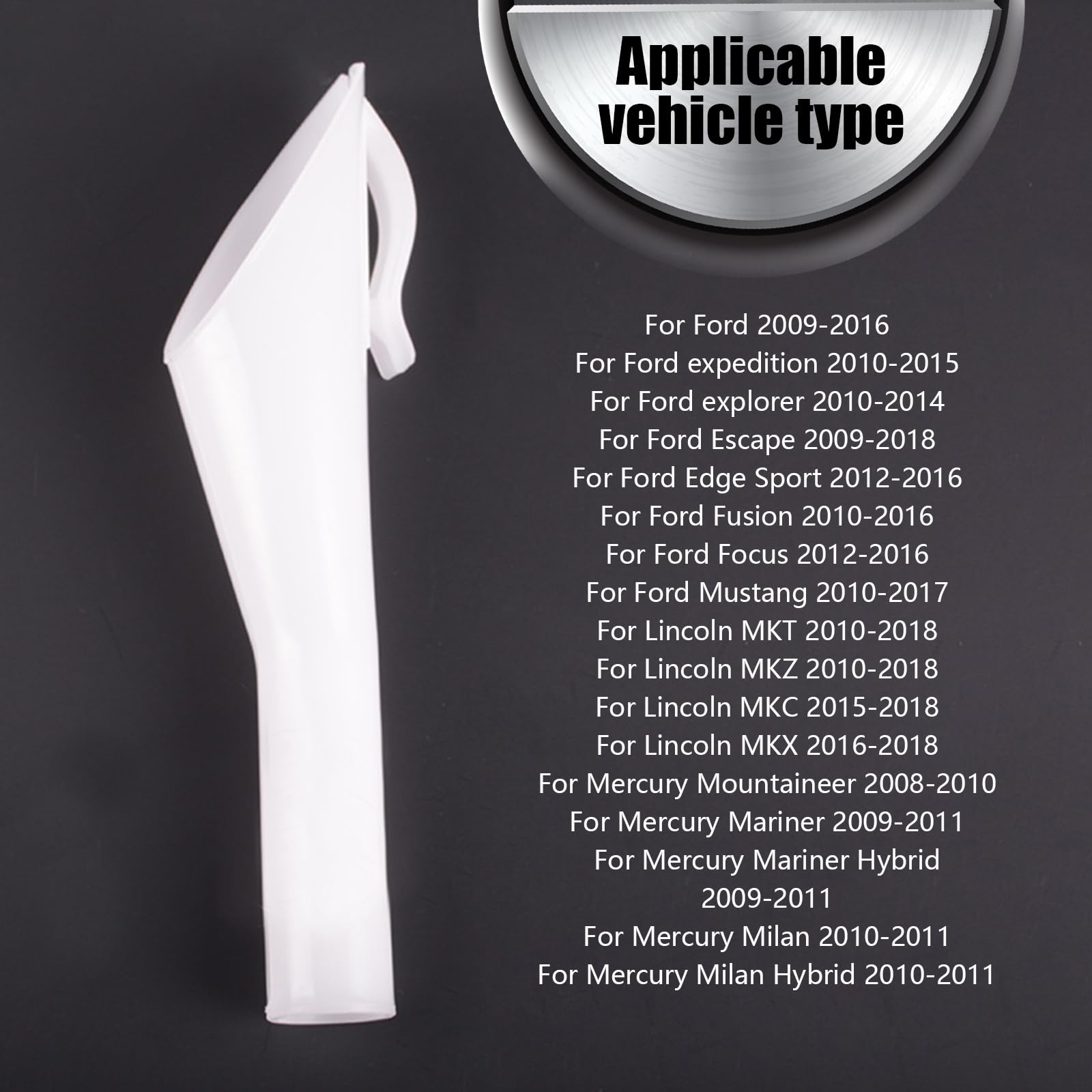 Veuillez consulter la description pour l'année détaillée à titre de référence uniquement. Guide de l'acheteur : le diamètre extérieur de ces entonnoirs automobiles est de 7,2 cm, la longueur du col est d'environ 17,8 cm, numéro de pièce de rechange parfait : 8U5A-17B068-EB 1782177 1833948 2050651. Veuillez vous référer au manuel du propriétaire pour le numéro de pièce ou les mesures afin de vérifier si la taille de notre produit correspond à votre voiture avant d'acheter afin d'éviter les achats qui ne s'appliquent pas. Une réplique 1:1 de l'entonnoir original, il n'y a pas besoin de vous soucier des liquides et des déversements, et le design à bouton-pression latéral empêche les chutes lors de l'utilisation et améliore votre processus de changement d'huile, fonctionne beaucoup mieux que les dépareillés. Lntyq Entonnoir à Essence Pour Voiture,Entonnoir de Remplissage de... Lot De 2 Entonnoirs De Rechange Pour Utilisation Automobile OEM #8U5A Les entonnoirs pour une utilisation automobile fonctionnent parfaitement avec le système sans capuchon spécifique au modèle. Vous pouvez également obtenir 2 entonnoirs automatiques à un prix raisonnable pour être prêt pour toute urgence, je pense que notre grand entonnoir de voiture sera avec vous pendant une longue période, sauf s'ils sont perdus. Application : les entonnoirs de voiture sont compatibles avec la plupart des modèles Ford/Lincoln/Mercury, tels que C-Max, Fiesta, Focus, Flex, F150, Edge Sport, Escape, Taurus, Mustang, Expedition, Fusion, Explorer, MKC, MKT, MKX, MKZ, Navigator, Mariner, Mariner Hybrid, Milan, Milan Hybrid, Mountaineer. Construction solide et durable : nos entonnoirs automobiles sont fabriqués en plastique super résistant, résistant aux rayures et durable, et fonctionne aussi bien que l'entonnoir d'origine de la voiture. Lot de 2 entonnoirs de remplissage de carburant pour voiture Lot de 2 entonnoirs de remplissage de carburant pour voiture, tube d'entonnoir de rechange standard Caractéristiques : Notre entonnoir à combustibles est sélectionné parmi un retardateur de flamme assurant sa résistance et sa stabilité tout en se déformant
